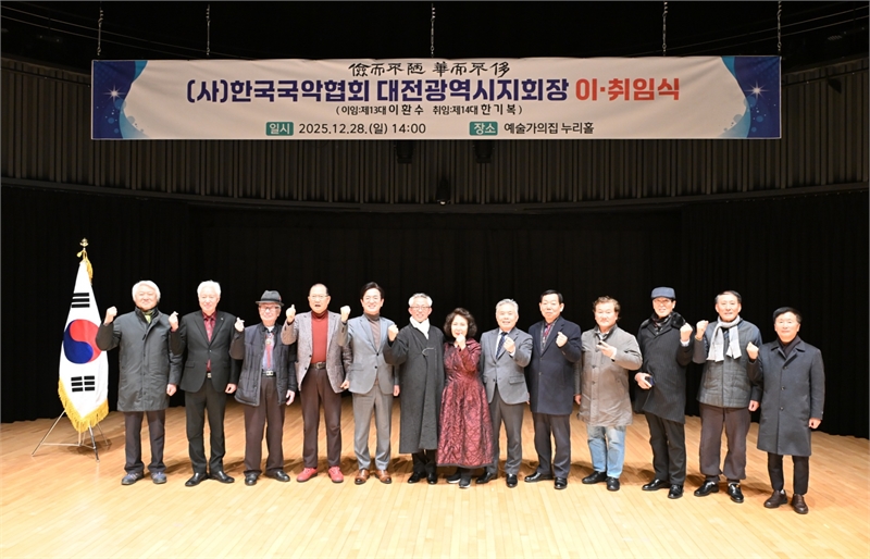 28일 오후 2시에 중구 문화동 예술가의 집 누리홀에서 '(사)한국국악협회 대전광역시지회장 이.취임식'을 곽성열 사회자가 진행했다.
