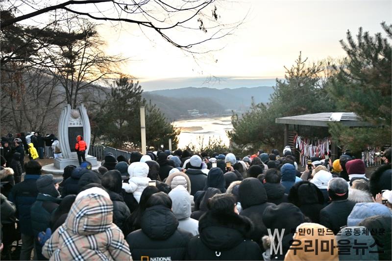 <중구 침산동 뿌리공원에서 '2026년 병오년 해맞이 행사에서 첫 해가 떠오르기를 기다리는 시민들>