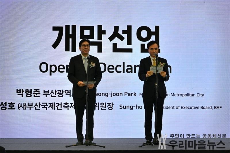 벡스코 제1전시장 2A홀에서 2025 부산국제건축제 - OMA 특별전에서 '2025 부산다운 건축상 시상식'이 있었다.행사는 박형준 부산국제건축제 명예위원장과 이성호 부산국제건축제 집행위원장이 개막선언에 이어서 박형준 부산광역시장의 대회사가 진행되었다.