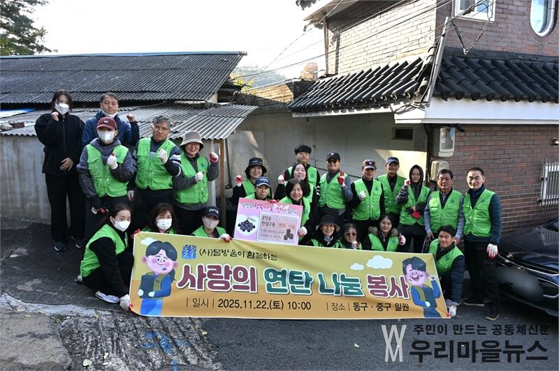 (사)물방울(이사장 이준석) 22일 오전 10시 대전 동구 판암동과 중구 석교동 일원에서 '사랑의 연탄 나눔 봉사활동'을 진행했다.