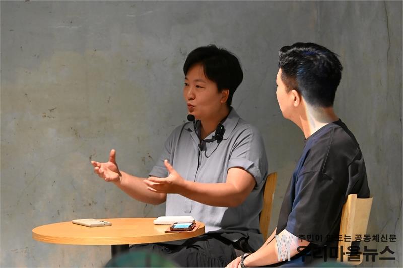 여상희 작가와 대화 시간에는 작가의 출품작에 대한 이야기와 심정 등을 솔직 담백하게 이야기를 했으며, 참가자의 질문도 이어졌다.