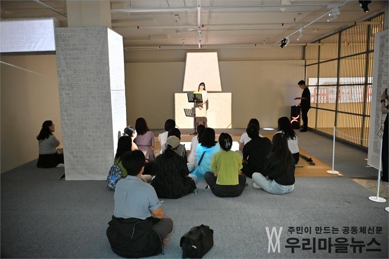 <아미동 비석 피란주거지에 대한 작가 설명을 듣는 관람자 모습>