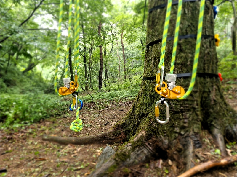 온새미로 보은숲밭의 튼튼한 밤나무에 설치한 트리클라이밍 장비(사진: 온새미로숲학교)