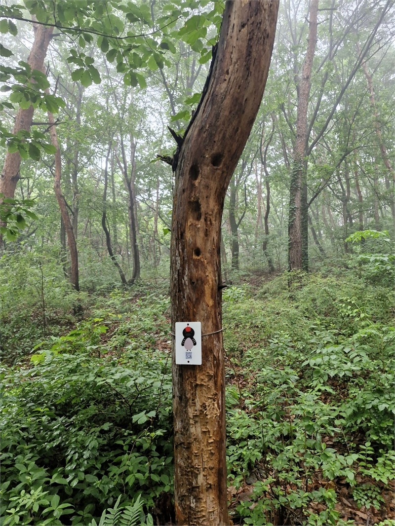 오색딱다구리 캐릭터로 제작한 소형QR마크해설판, 온새미로 보은숲밭의 숲생태계를 설명하는 해설판으로 사계절 숲교육 콘텐츠를 제공하기 위해 산림복지진흥원의 '임업-산림복지 복합경영 지원사업'을 통해 제작(사진: 온새미로숲학교)