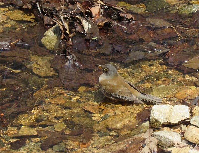 새들이 계류에서 물을 튕기며 목욕을 하는 모습이