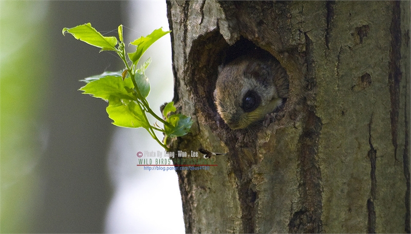 오색딱다구리가 파놓은 밤나무 구멍을 차지한 하늘다람쥐(제공: 이성원)