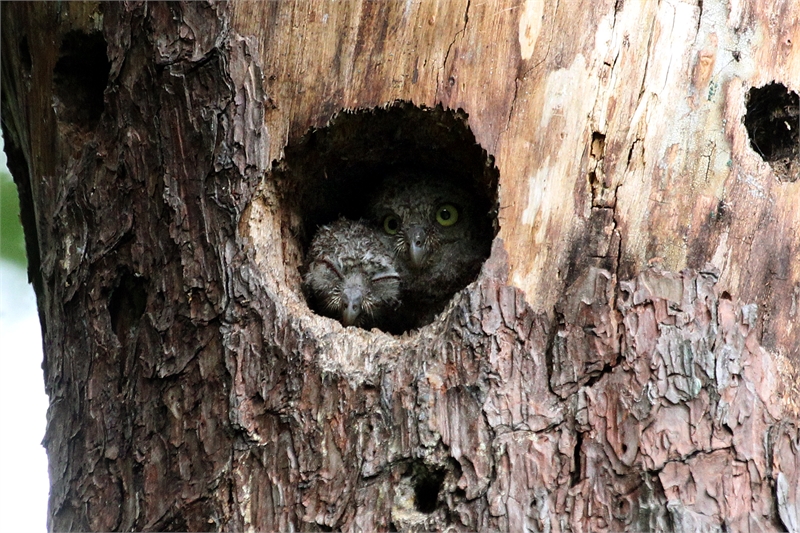 딱다구리가 파 놓은 소나무 나무 구멍에 사는 새끼 소쩍새(제공: 이성원)